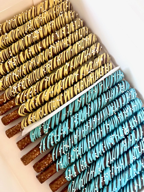 “I ordered an entire table of treats for my baby shower, and it was amazing. Everything got devoured, and the chocolate covered pretzels were a well-loved thank you gift for my guests!”